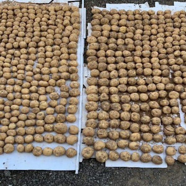 In both photos, the potatoes on the right are treated with AQUASORB